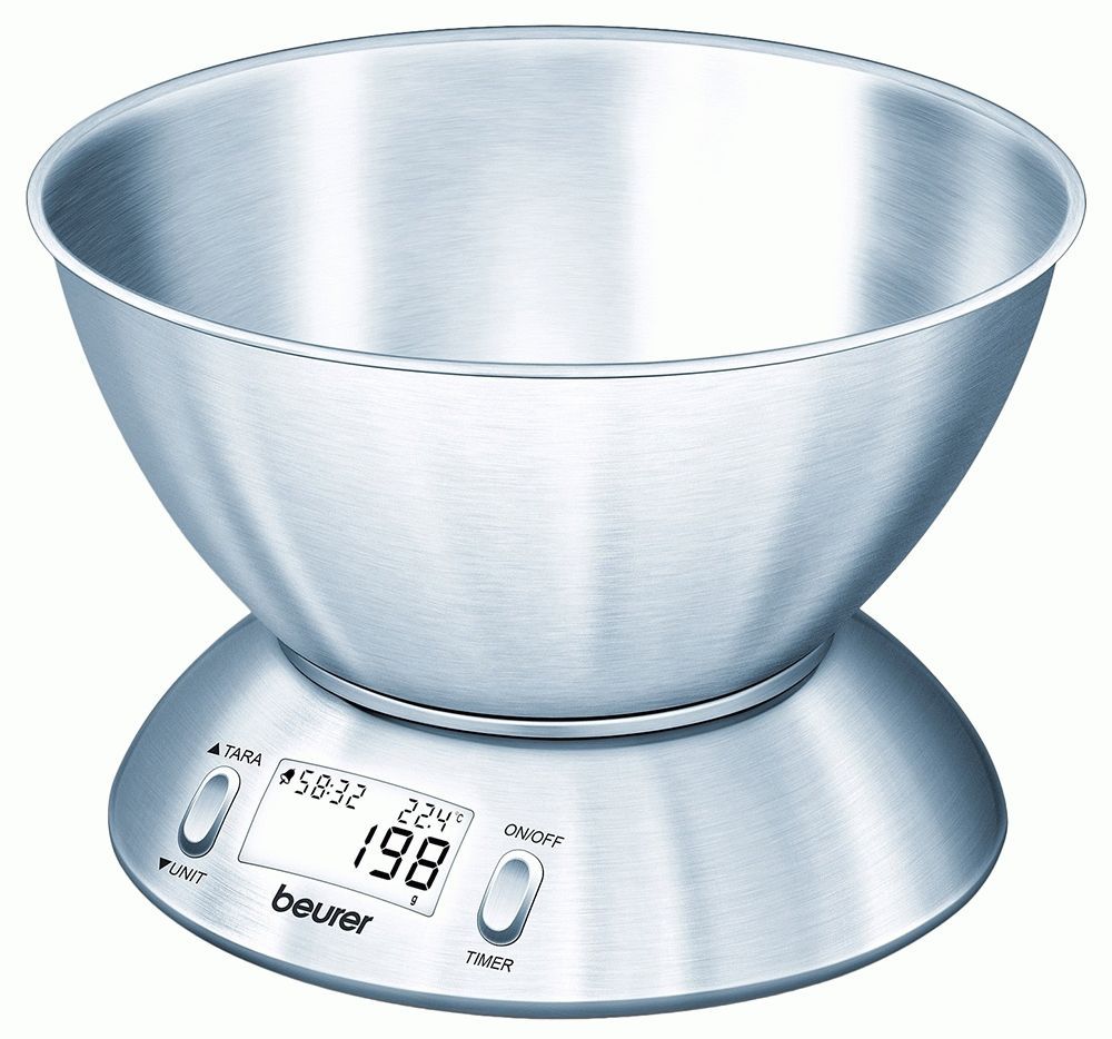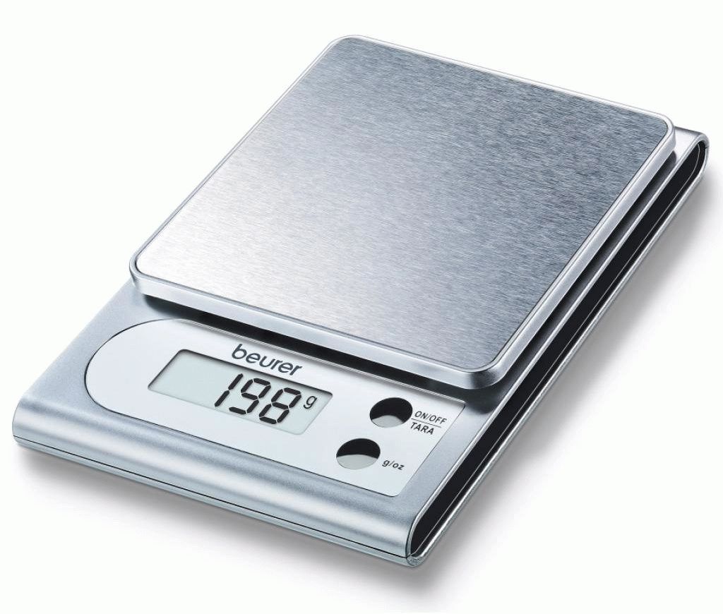اس پیمانے میں ایک حجمی کٹورا ہے جسے الگ سے استعمال کیا جا سکتا ہے۔ اس ڈیوائس کے ذریعے آپ 1 گرام انکریمنٹ میں 5 کلو تک خوراک کا وزن کر سکتے ہیں۔ وزن کے عمل کے دوران، آپ دیگر مصنوعات شامل کر سکتے ہیں، جو کہ وزن کو دوبارہ ترتیب دینے کے فنکشن کے ذریعے فراہم کیا جاتا ہے۔ آسانی سے پڑھنے کے لیے ڈسپلے بیک لِٹ ہے۔ مزید برآں، ایک تھرمامیٹر اور ٹائمر نصب ہیں۔ آپریشن کے لیے بیٹریاں درکار ہوتی ہیں، جن کا چارج آٹو آف فنکشن کی موجودگی کی وجہ سے اقتصادی طور پر استعمال ہوتا ہے۔