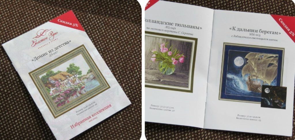 روسی کارخانہ دار سوئی خواتین کو کٹس کا ایک بڑا انتخاب پیش کرتا ہے: بچوں کی تصاویر، مناظر، جانور، خواتین کی تصاویر، شہری ساخت، پھولوں کے نمونے۔ ایک مبتدی کے لیے جو نہیں جانتا کہ کہاں سے آغاز کرنا ہے، گولڈن فلیس برانڈ کے سادہ لیکن اصلی پلاٹوں کی سفارش کی جاتی ہے۔ پیچیدگی کی مختلف ڈگریوں کی اسکیمیں۔