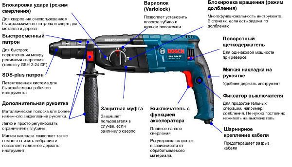1.15 کلو واٹ کی بجلی کی کھپت کے ساتھ، الیکٹرک روٹری ہتھوڑا بہت سے مشکل کاموں کے ساتھ بہت اچھا کام کرتا ہے۔ کم رفتار (2850 rpm) کی تلافی سے زیادہ زبردست اثر قوت (9 J)۔ یہ ماڈل جس چیز پر فخر کرتا ہے وہ نوزل کے قطر کو منتخب کرنے کے متاثر کن امکانات ہیں۔ کام کرنے کے تین مختلف انداز آپ کو بہت سے آسان کام انجام دینے کی اجازت دیتے ہیں، بشمول ہتھوڑا ڈرلنگ۔ معکوس نظام معکوس گردش کے ذریعے مواد سے پنچ نکالنا آسان بناتا ہے۔ متاثر کن طول و عرض کے ساتھ 7.5 کلوگرام وزن کام کے دوران موبائل کی نقل و حرکت کو پیچیدہ بناتا ہے۔ ایک الیکٹرانک رفتار کنٹرول تقریب ہے. ٹول کے غلط آپریشن یا ناکامی کی صورت میں میکانزم کو روکنے کے لیے ایک اچھا نظام موجود ہے۔ اضافی ہینڈل میں جھٹکا جذب کرنے والا نظام ہے، جو پیچھے ہٹنے کو نمایاں طور پر کم کرتا ہے۔ اوسطا، خریدار کو اس طرح کے ماڈل کے لیے کم از کم 55 ہزار روبل ادا کرنا ہوں گے۔