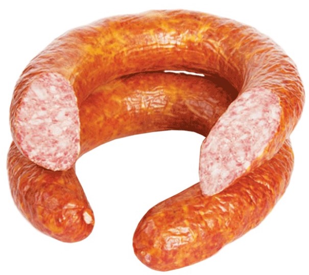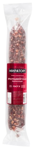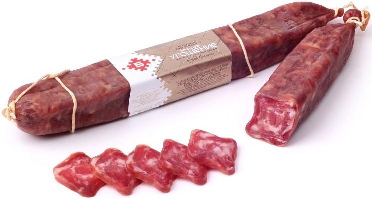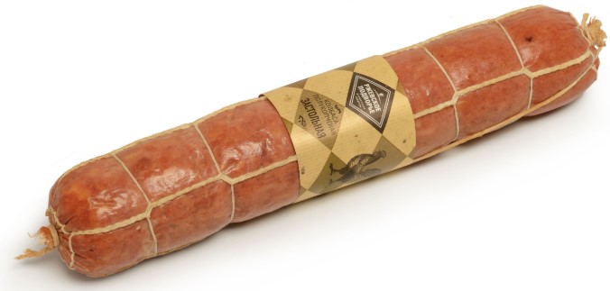 | کمپاؤنڈ | گائے کا گوشت، بیکن، سور کا گوشت، نائٹریٹ نمک (کھانے کا ٹیبل نمک، رنگ درست کرنے والا - سوڈیم نائٹریٹ)، پیچیدہ فوڈ ایڈیٹو (چینی، مصالحے، اینٹی آکسیڈینٹ - ایسکوربک ایسڈ)، اسٹارٹر کلچر |