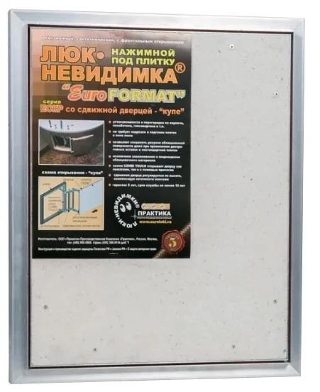 ٹائلوں کے نیچے نصب۔ اس کی قیمت 1869 روبل ہے۔ ایک دھکے سے کھلتا ہے۔ طول و عرض - 30x40 سینٹی میٹر۔ گہرائی - 55 ملی میٹر۔ ایلومینیم سے بنا۔