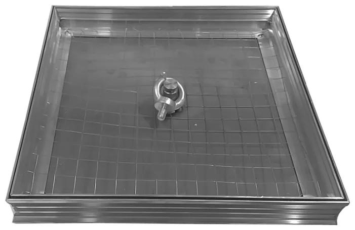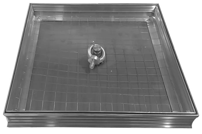 2280 روبل کے لیے ٹائل کے نیچے فرش کا نظارہ۔ کھولنے کے لیے ایک ہینڈل ہے۔ پوری ساخت ایلومینیم سے بنا ہے، ایک مہر ہے. گہرائی - 5 سینٹی میٹر، وزن 2.6 کلوگرام۔