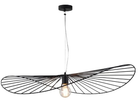ماڈل دوسروں سے بہت مختلف ہے - لیمپ شیڈ ایک ٹوپی کی طرح ہے، کمرے کے وسط میں تیرتا ہے. اس طرح کا چراغ یقینی طور پر مہمانوں کی توجہ کو اپنی طرف متوجہ کرے گا.