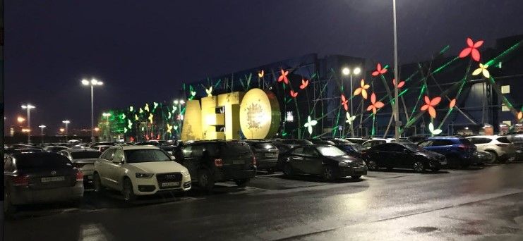 مشہور برانڈز کی کثرت کے ساتھ سینٹ پیٹرزبرگ کے مضافات میں وسیع، آرام دہ شاپنگ سینٹر، آٹو فیلڈ کے ذریعے ایک اضافی آسان داخلہ، ایک بڑی پارکنگ لاٹ۔ اس وسیع علاقے میں 163 اسٹورز، ایک سنیما کمپلیکس، ایک IKEA ہائپر مارکیٹ، 25 فوڈ آؤٹ لیٹس کا ایک فوڈ کورٹ ہے جس کے درمیان میں ایک حقیقی آئس رنک ہے۔ سلائیڈ، جھولوں، گھر کے ساتھ کھیل کا میدان۔ گاہکوں کے لیے، نئے پلمبنگ کے ساتھ آرام دہ بیت الخلا، جدید ہاتھ سے خشک کرنے والے نلکے۔ پورے شاپنگ سینٹر میں مفت وائی فائی دستیاب ہے، ریسٹورنٹ ڈپارٹمنٹ میں بنچوں اور صوفوں کے قریب گیجٹس کو چارج کرنے کے لیے ساکٹ موجود ہیں۔
