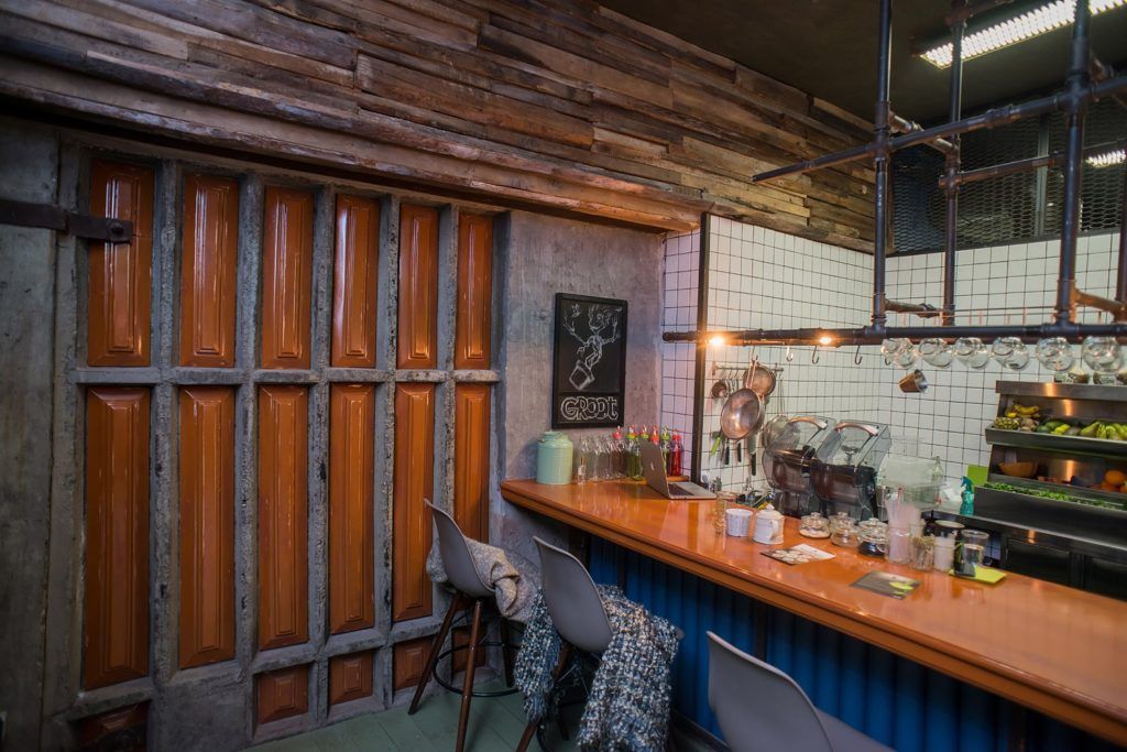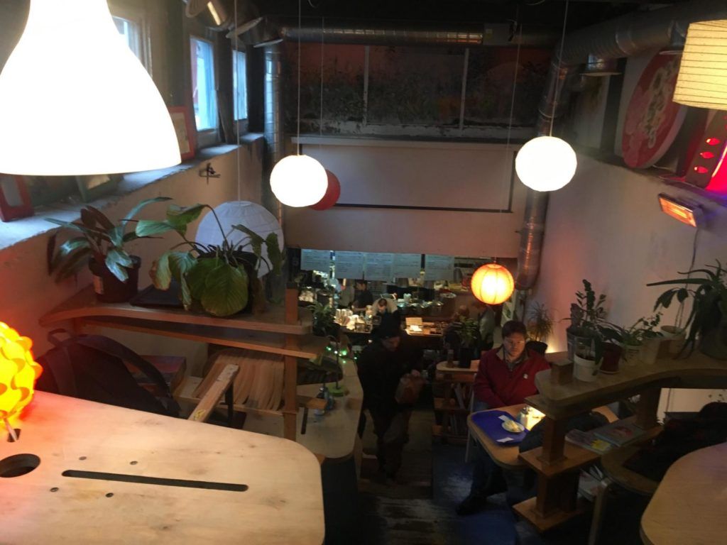 یہ کیفے درحقیقت ایک منفرد جگہ ہے۔ اس کا اندرونی حصہ مکمل طور پر دستکاری سے بنایا گیا ہے۔ کیفے کے مالکان نے لفظی طور پر اسے ٹکڑوں اور ٹکڑوں میں بنایا تھا۔ فرش کے لیے نارنجی تیل سے رنگا ہوا ایک پرانا بورڈ استعمال کیا گیا تھا، چھتوں اور دیواروں کو ایڈوب ٹائلوں سے مکمل کیا گیا تھا۔ یہاں گھریلو ماحول ہے۔ ایسا کرنے کے لیے، کیفے کے دروازے پر تمام زائرین کو اپنے جوتے اتارنے کی پیشکش کی جاتی ہے۔ ریستوراں کے تمام ملازمین مختلف فرائض انجام دیتے ہیں، پیشے کے لحاظ سے کوئی سخت تقسیم نہیں ہے۔ کھانا پکانے اور برتن دھونے کا سارا عمل زائرین کے سامنے ہوتا ہے۔ کوئی مینو نہیں ہے۔ زائرین کو وہ پکوان پیش کیے جاتے ہیں جو باورچی اس دن تیار کرتے ہیں۔ کیفے ہندوستانی ڈبہ کے اصولوں کے مطابق کام کرتا ہے۔ تمام پکوان بہت اعلیٰ معیار کے ہیں۔