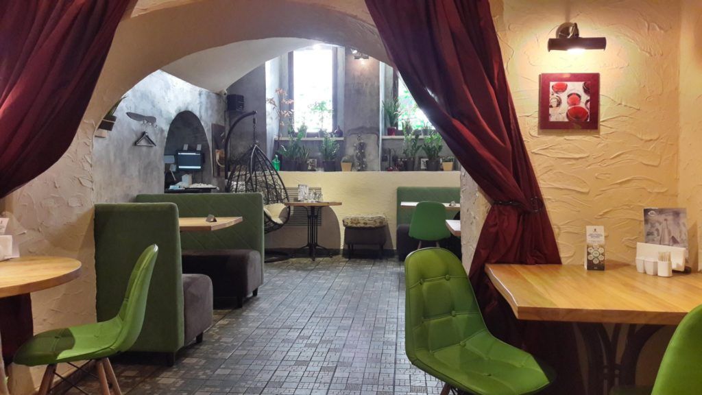 اس کیفے کا احاطہ سابقہ بموں کی پناہ گاہ تھا۔ اسٹیبلشمنٹ جمہوری قیمتوں، لذیذ پکوانوں اور مشروبات سے ممتاز ہے۔ اس کے ساتھ ساتھ اسٹیبلشمنٹ کے مالکان نے خود انٹیریئر ڈیزائن کیا، فرنیچر بنایا اور اب ہال میں گاہکوں کو سرو کر رہے ہیں۔ اس کیفے میں ہمیشہ غیر معمولی ماحول ہوتا ہے۔