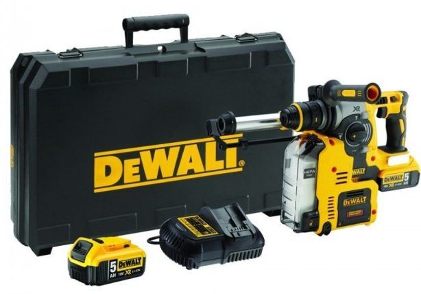 فیکٹری کا سامان - اضافی ہینڈل، ڈرلنگ ڈیپتھ گیج، کی لیس چک، چارج اشارے کے ساتھ دو 5.0Ah XR Li-Ion بیٹریاں، XR یونیورسل چارجر، ٹول کو لٹکانے کے لیے ہک، بلٹ ان ڈسٹ کلیکٹر D25303DH، کیس۔