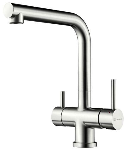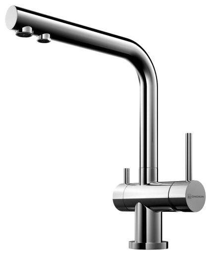 سیرامک کارٹریج سنگل لیور مکسر ایک ہی ختم کے ساتھ سٹینلیس سٹیل سے بنا ہے۔ صفائی اور خصوصی مائع لگانے کے بعد، باورچی خانے میں ٹونٹی نئے کی طرح چمک جائے گی۔ اینٹی سنکنرن مواد ایک طویل وقت تک رہے گا، لیکن غلط استعمال اور غیر مناسب دیکھ بھال کی صورت میں معمولی خروںچ سے محفوظ نہیں ہے. سنک اور دو سوئچز پر افقی تنصیب - نل اور فلٹر شدہ پانی کے لیے - آپ کو الگ ٹونٹی لگانے کی اجازت نہیں دیتی ہے۔ روایتی ایل کے سائز کا ٹونٹی کسی بھی شکل کے سنک میں برتن دھونے کی سہولت فراہم کرتا ہے۔ نل کی اونچائی آپ کو بغیر کسی کوشش کے چھوٹے اور بڑے برتن دھونے کی اجازت دیتی ہے۔ ٹونٹی کو باتھ روم اور وسیع واش بیسن میں لگایا جا سکتا ہے۔ Ergonomics اچھی طرح سے سوچا. سہولت اور استعداد کا تعین مصنوعات کی اعلیٰ قیمت سے ہوتا ہے۔