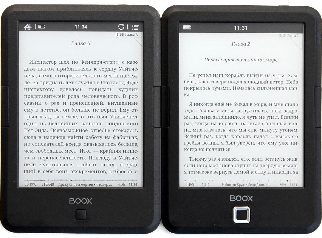 ایک اور چیز جس پر توجہ دینے کی ضرورت ہے - E Ink Carta ڈسپلے کی ایک خصوصیت بصارت پر پڑنے والے اثرات کو کم کرنے کے لیے سمجھا جاتا ہے، جو آپ کو زیادہ وقت پڑھنے کی اجازت دیتا ہے۔ اچھی پکسل کثافت کی وجہ سے، ڈیوائس بہت چھوٹے سائز میں بھی فونٹس میں فرق کرنے کے قابل ہے۔ اس ماڈل کا فائدہ ٹھنڈے رنگ کے لہجے میں بنی ایک ایڈجسٹ شدہ سنگل کلر بیک لائٹ کی موجودگی کو بھی کہا جا سکتا ہے۔ تاہم، اسکرین کی زیادہ سے زیادہ چمک کی سطح کو بہت زیادہ نہیں بتایا جا سکتا، جو منظر کو متاثر کرتی ہے۔ مثال کے طور پر، ڈسپلے شام یا رات کے وقت ڈیوائس کو استعمال کرنے کے لیے مناسب ہے، بغیر اضافی لائٹنگ آن کرنے کی ضرورت ہے۔ تاہم، دن کی روشنی میں، بیک لائٹ کے اختیارات شامل کرنے کی خواہش ہوتی ہے۔ اسے ایڈجسٹ کرنے کے لیے، مین ڈسپلے پر ایک بٹن ہے۔ اسکرین کی سطح شیشے کی ہے۔