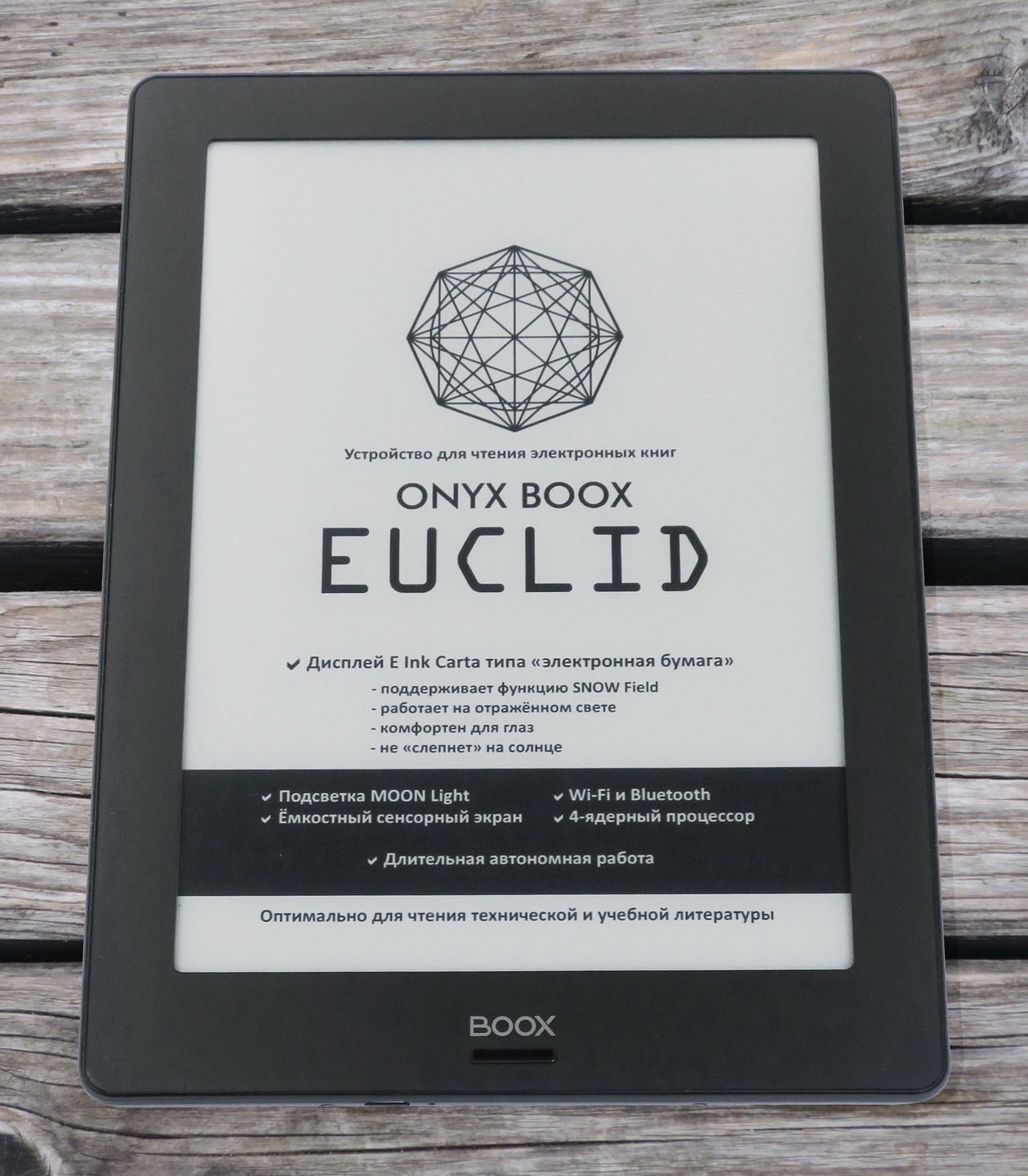 BOOX Euclid کافی بڑا ای ریڈر ہے جو طلباء اور پروفیسرز کے لیے ایک پیشہ ور ٹول بن سکتا ہے۔ 2019 میں گیجٹ کی قیمت کافی زیادہ ہے، لیکن اس کا جواز اس کے اعلیٰ معیار اور پائیداری کے ساتھ ہے اور اس کا ماڈل کی مقبولیت پر کوئی منفی اثر نہیں پڑا ہے۔ فوائد کی ایک بڑی تعداد کی موجودگی اس جدید ترمیم کا انتخاب کرتے وقت غلطیوں کو ختم کرتی ہے۔