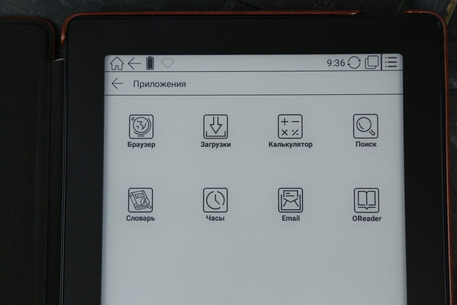 بیرونی طور پر، ای بک بہت خوبصورت لگتی ہے - گول کونوں کے ساتھ ایک کلاسک مستطیل شکل۔ کیس کی تیاری کے لیے مواد کے طور پر سیاہ اعلیٰ معیار کے پلاسٹک کا انتخاب کیا گیا تھا جس کی لکیر والی سطح تھی۔ کارپوریٹ لوگو کو عقبی پینل پر رکھا گیا ہے، جہاں دو اسپیکر بھی موجود ہیں۔ اسکرین کو فریم کرنے والے فرنٹ بیزل کے کنارے کافی چوڑے ہیں۔ کیس کے نیچے والے حصے میں ایک USB پورٹ اور دو ہیڈ فون جیک ہیں۔ اوپر کی طرف ایک انلاک بٹن ہے۔
