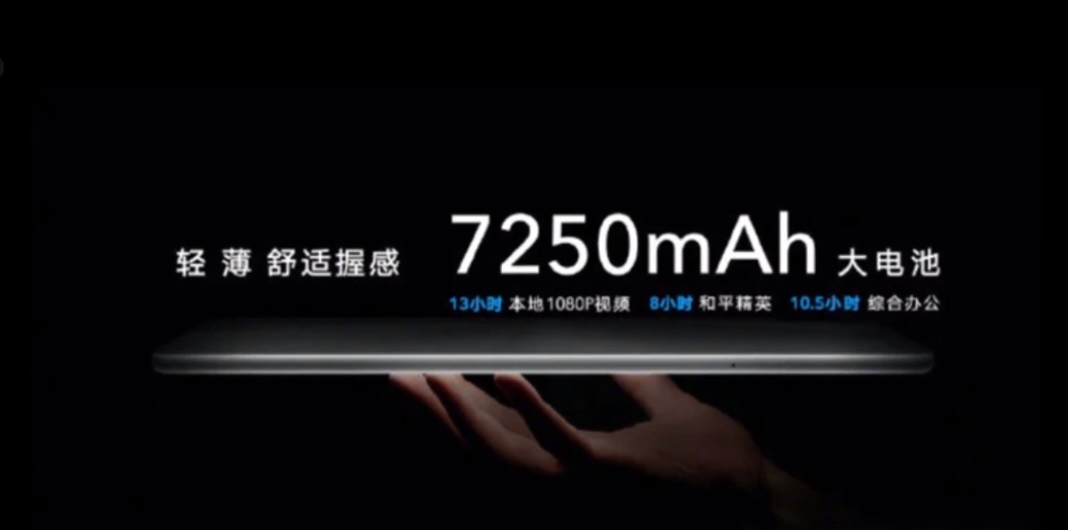غیر ہٹائی جانے والی لیتھیم پولیمر بیٹری کی اعلان کردہ صلاحیت 7250 mAh ہے، جو بڑی توانائی استعمال کرنے والی اسکرین اور طاقتور پروسیسر والے ٹیبلیٹ کے لیے واقعی بہت زیادہ ہے۔