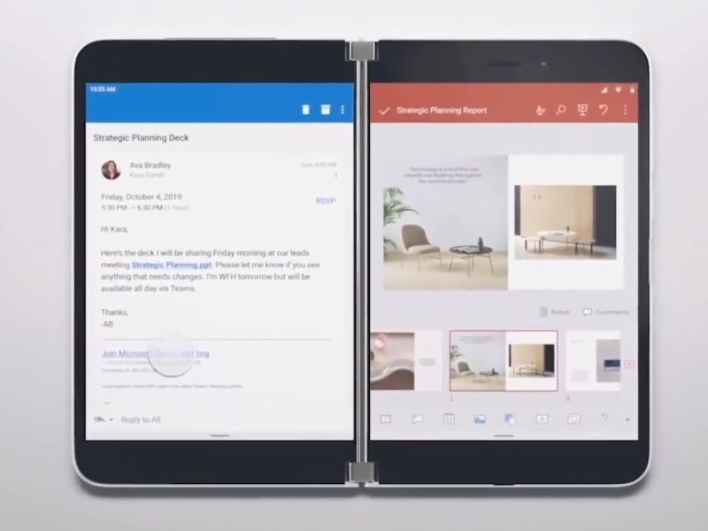 Surface Duo Google Android OS (Android 9 Pie پلس Microsoft کے لانچر) کے ساتھ آتا ہے۔ اینڈرائیڈ ورژن Neo پر Windows 10X آپریٹنگ سسٹم کے جتنا ممکن ہو قریب ہے۔کارخانہ دار نے اس OS کو استعمال کرنے کا فیصلہ کیوں کیا؟ آخر کار، سرفیس نیو ٹیبلٹ ونڈوز 10 ایکس کے جدید ترین ورژن کا نیا سسٹم چلا رہا ہے، جس کے ذریعے آپ اینڈرائیڈ ایپلی کیشنز کی تقلید کر سکتے ہیں۔ شاید کوئی کنکشن ہے: ونڈوز ایک بہتر پی سی/ٹیبلیٹ آپریٹنگ سسٹم بناتا ہے جو ایسی ڈیوائسز پر بہتر کام کرتا ہے، جبکہ اینڈرائیڈ او ایس اسمارٹ فونز کے لیے زیادہ موزوں ہے۔ Surface Duo سرفیس ہارڈویئر کو گوگل ایپ اسٹور کے ساتھ جوڑتا ہے۔ مینوفیکچرر کے مطابق اینڈرائیڈ سسٹم کی بالکل تمام ایپلی کیشنز سمارٹ فون پر کام کریں گی۔ ایسا کرنے کے لیے، ڈویلپر کو ایک سال کا وقت دیا جاتا ہے کہ وہ عوام کے لیے پروڈکٹس لانچ کرنے سے پہلے اس اسمارٹ فون ماڈل کے لیے موزوں تمام ممکنہ ایپلی کیشنز اور پروگراموں کو لاگو کرے اور ان کی جانچ کرے۔ انٹرفیس میں ایج براؤزر اور مائیکروسافٹ آفس پیکج شامل ہوں گے - کمپنی کی اپنی پیشرفت۔