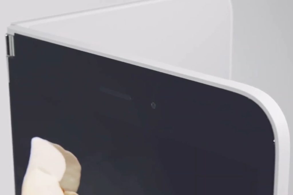 اسکرین کا سائز 5.6 انچ ہے۔ اسکرین تقریبا مربع ہے۔ یہ عنصر آپ کو یہ سوچنے پر مجبور کرتا ہے کہ آپ کے ہاتھ میں ڈیوائس کو پکڑنا کتنا آرام دہ ہوگا، یہاں تک کہ فولڈ ہونے کے باوجود۔ 180 ڈگری کے زاویے پر، دونوں ڈسپلے ایک بڑے میں تبدیل ہو جاتے ہیں، جس کا اخترن 8.3 انچ ہے۔ ایک ہی وقت میں، ایک مکمل فریم کی موجودگی کی وجہ سے اسکرین یکساں نظر نہیں آتی جو ڈسپلے کو درمیان میں تقسیم کرتا ہے، دھاتی چمک سے منعکس ہوتا ہے۔ ڈسپلے پر نصب قبضہ لوپ آپ کو اسکرین کو 360 ڈگری گھمانے کی اجازت دیتا ہے۔ گردش کے زاویہ پر منحصر ہے، ڈیوائس کے مختلف منظرنامے اور ایپلیکیشنز استعمال کی جا سکتی ہیں۔