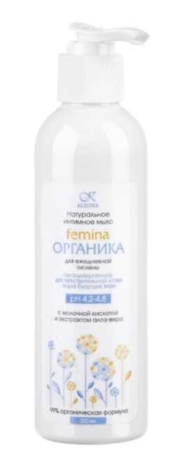 Hypoallergenic صابن برانڈ Kleona مباشرت مصنوعات کے درمیان ایک مقبول انتخاب سمجھا جا سکتا ہے. متوازن ساخت خواتین اور لڑکیوں کے لیے موزوں ہے جن میں زیادہ حساسیت ہے، الرجک رد عمل کا رجحان ہے، اور حاملہ خواتین کے لیے بھی موزوں ہے۔ فیمینا آرگنیکا کا روزانہ استعمال نہ صرف سوزش کو دور کرتا ہے بلکہ dysbiosis کی روک تھام میں بھی مددگار ثابت ہوتا ہے۔مرکب میں موجود تیزاب: لیکٹک اور سائٹرک - نرم ایکسفولیئشن میں مدد کرتے ہیں، چھیدوں کو صاف کرتے ہیں اور جلد اور چپچپا جھلیوں کی تیزابیت کی قدرتی سطح کو برقرار رکھتے ہیں۔ لیکٹک ایسڈ سوڈیم لییکٹیٹ کے ساتھ سمبیوسس میں کام کرتا ہے، جو اثر کو بڑھاتا ہے اور نمی پیدا کرنے والے مادوں کی رسائی کو گہرا بناتا ہے۔ ایلو ویرا کا عرق لالی کو دور کرتا ہے اور جلد کو نرم کرتا ہے، اس کے علاوہ چپچپا جھلی کو نمی بخشتا ہے۔
