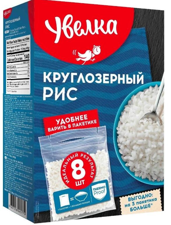 یہ اناج تیز رفتار کھانا پکانے کی رفتار کی طرف سے خصوصیات ہے: اسے 10-13 منٹ تک پکانا کافی ہے. ایک شفاف بیگ میں پیک کیا گیا ہے، جو آپ کو سامان کے معیار کا اندازہ لگانے کی اجازت دیتا ہے۔ کئی قسم کے پکوانوں کے لیے موزوں: اناج، پڈنگ، سشی اور رول۔ 100 گرام کی توانائی کی قیمت - 356 کلو کیلوری۔