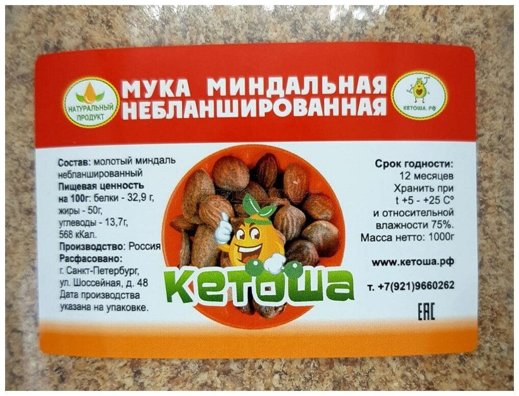 اعلیٰ درجے کا آٹا، باریک پیس، بیکنگ کے لیے مثالی۔ سرخ جلد (بلینچڈ) بادام سے چھلکے نہ ہونے کے حصے کے طور پر، یہ آٹے میں فائبر کی سطح کو بڑھاتا ہے۔ اس سے آپ کم کارب مٹھائیاں (بن، مفنز وغیرہ) بنا سکتے ہیں۔ شیلف زندگی 12 ماہ ہے. اوسط قیمت: 1060 روبل۔