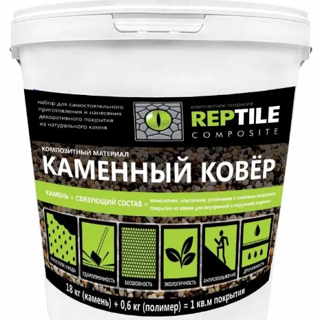 مواد کا مقصد باغیچے کے راستوں کو گھوںسلا بنانے کے لیے ہے، اور اسے گھر کے اندر بھی استعمال کیا جا سکتا ہے۔ مواد قدرتی پتھر اور پولیوریتھین پولیمر کا مجموعہ ہے، جو عناصر کے لیے بائنڈر کا کام کرتا ہے۔ بعض تقاضے اس سطح پر لاگو ہوتے ہیں جس پر پتھر کا قالین بچھایا جا سکتا ہے۔ یہ صاف، خشک اور مضبوط ہونا چاہیے۔ لے آؤٹ موجودہ اسفالٹ یا کنکریٹ پر کیا جا سکتا ہے، چاہے ٹائل پسے ہوئے پتھر کی تیار شدہ پرت ہو۔ بچھانے کے لئے درجہ حرارت کا نظام 5 سے 30 ڈگری سیلسیس تک ہے۔ اور ایک ریڈی میڈ پتھر قالین کا راستہ - 60 سے + 90 ڈگری تک درجہ حرارت کو برداشت کر سکے گا۔