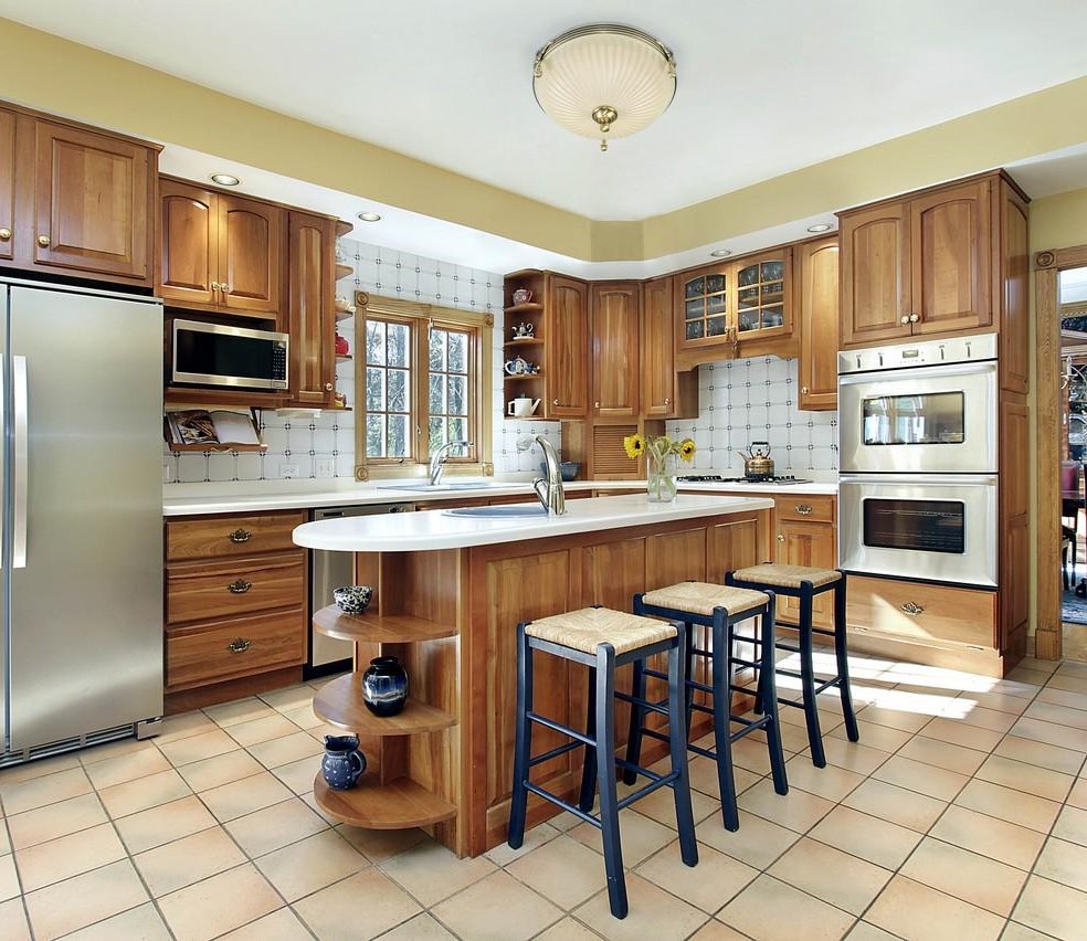 جزیرے کی شکل جدید ہے، اٹلی سے مستعار لی گئی ہے۔ کام کی سطح کے ساتھ جزیرے الگ سے واقع ہے (کمرے کے وسط میں)، الماریاں، آلات دیواروں کے ساتھ واقع ہیں۔ بڑے کمروں، مشترکہ کچن اور لونگ روم کے لیے ایک بہترین آپشن۔