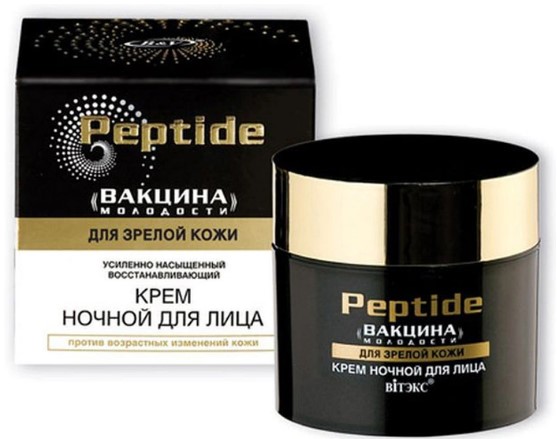 سبزیوں کے پیپٹائڈ کمپلیکس کے ساتھ ایک مؤثر اینٹی ایجنگ ایجنٹ آپ کو اپنی جلد کو عمر سے متعلق ناخوشگوار تبدیلیوں سے جلد چھٹکارا دینے کی اجازت دیتا ہے: چکنا پن، جھرنا، گہری جھریاں، پھیکا رنگ، ہائپر پیگمنٹیشن، سوھاپن۔ نائٹ کریم کے طور پر ہفتے میں ایک یا دو بار صاف چہرے پر لگائیں، سوائے پلکوں اور ہونٹوں کے آس پاس کے علاقوں کے۔ اسے کللا کرنا ضروری نہیں ہے، کریم ماسک بالکل جذب ہو جاتا ہے، زیادہ کو نیپکن سے داغنے کے لیے کافی ہے۔ اس کے باوجود، کچھ صارفین درخواست کے بعد پہلے گھنٹے میں جلد پر چکنائی والی فلم کا احساس نوٹ کرتے ہیں۔ مرکب میں شامل کولیجن اور ایپیڈرمل نمو کا عنصر پیپٹائڈس کے عمل کو بڑھاتا ہے، جس سے خلیوں کی تخلیق نو کے عمل کی بحالی، اچھی غذائیت اور گہری ہائیڈریشن ہوتی ہے۔