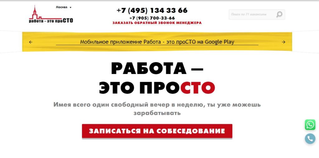 ایک نوجوان، فعال طور پر ترقی کرنے والی کمپنی بنیادی طور پر نوجوانوں اور طلباء میں بھرتی کر رہی ہے۔ مکمل اور جز وقتی ملازمت کے ساتھ ساتھ شفٹ کام دونوں پیش کرتا ہے۔ ایک لچکدار نقطہ نظر، اسامیوں کی وسیع اقسام اور فعال فیڈ بیک نے اس فرم کو تیزی سے بڑھتی ہوئی مقبولیت فراہم کی۔