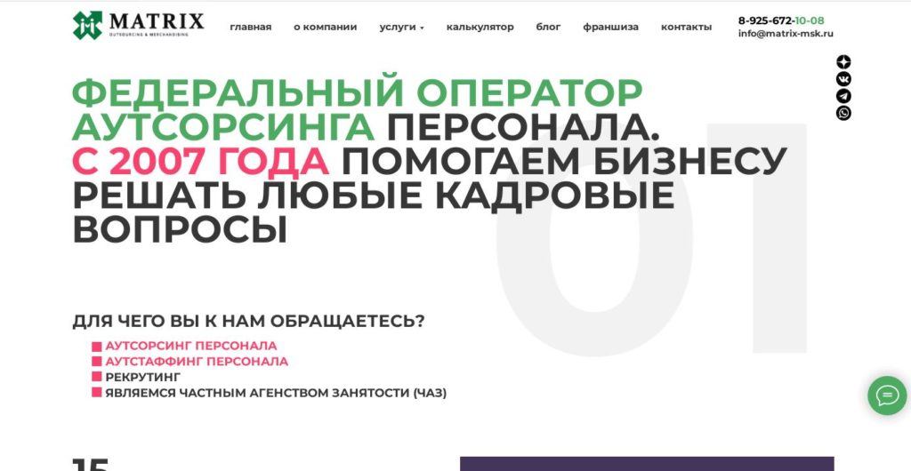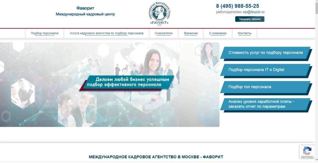 سب سے قدیم بھرتی ایجنسیوں میں سے ایک 30 سالوں سے کام کر رہی ہے۔ یہ ماسکو اور ماسکو کے علاقے میں سب سے زیادہ مقبول میں سے ایک ہے. دفتر ایک معروف کاروباری مرکز میں واقع ہے۔ کمپنی کے ملازمین نہ صرف اہلکاروں کا انتخاب کریں گے بلکہ انہیں تربیت کے لیے بھیجیں گے، ملازمت، ٹیکس کی ادائیگی وغیرہ سے متعلق تمام امور پر مشورہ دیں گے۔