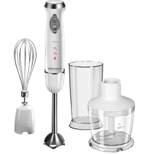 یہ ماڈل، ہٹنے کے قابل نوزلز کی بدولت، ایک مکسر، ایک بلینڈر اور ایک ہیلی کاپٹر کو یکجا کرتا ہے۔ وِسک اٹیچمنٹ کا استعمال کرتے ہوئے، آپ کریم، آٹا، بیٹ انڈے یا کریم تیار کر سکتے ہیں۔ ڈوبنے والے بلینڈر کے ساتھ، آپ نہ صرف اسموتھیز اور شیک بنا سکتے ہیں، بلکہ بچوں کے کھانے کی پیوری، پیٹ یا موسس بھی بنا سکتے ہیں۔ ہیلی کاپٹر کے پیالے میں، آپ گری دار میوے کو آسانی سے پیس سکتے ہیں، جڑی بوٹیاں یا سبزیاں کاٹ سکتے ہیں۔ اس ترتیب کے ساتھ، Redmond RHB-2972 فوڈ پروسیسر کا بہترین متبادل ہو سکتا ہے، صرف یہ باورچی خانے میں کم جگہ لے گا۔