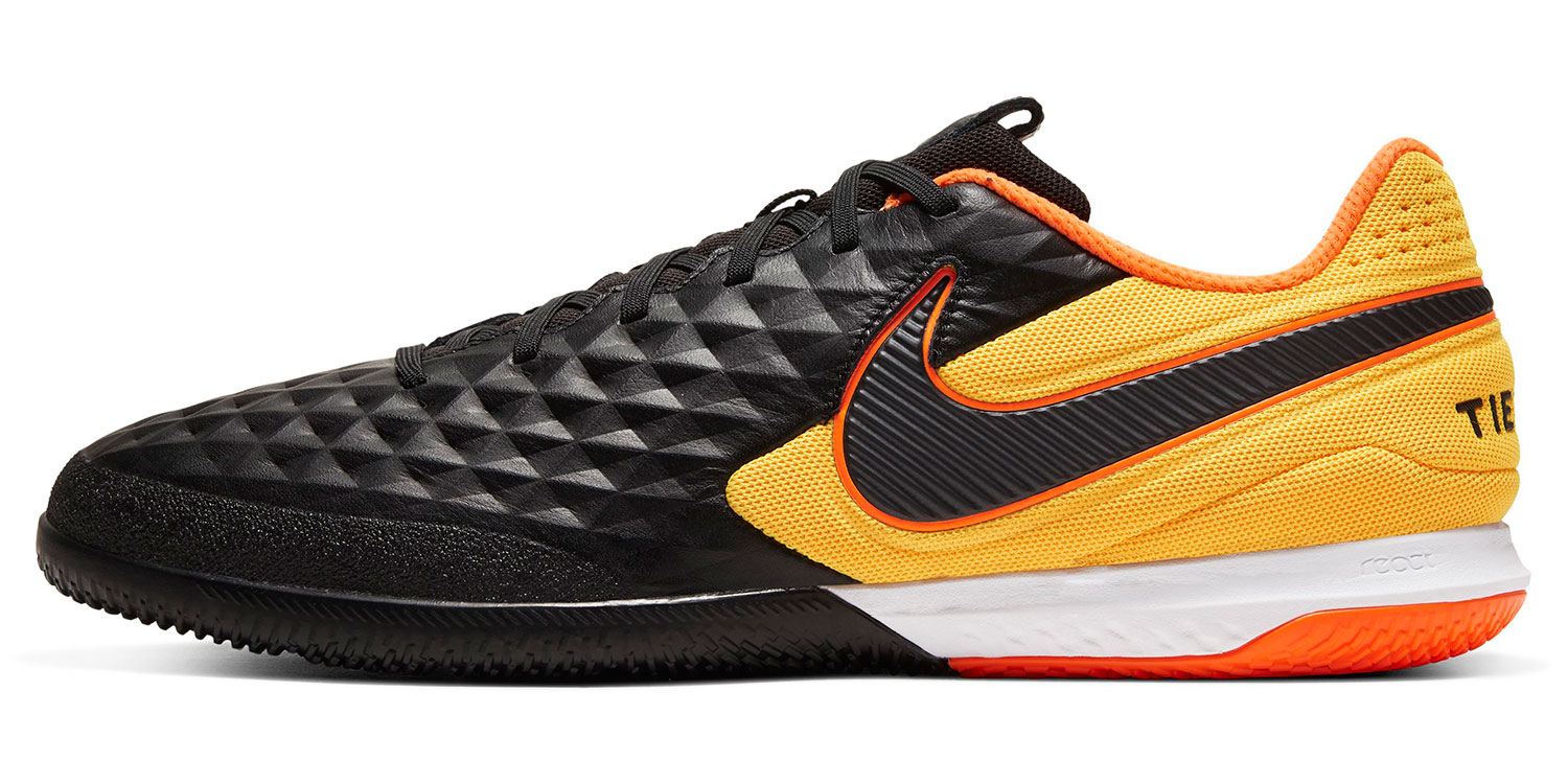 Nike's React Legend 8 Pro IC AT6134-004 کو حقیقی چمڑے سے بنایا گیا ہے تاکہ اچھی طرح سے فٹ اور گیند سے بہتر رابطہ ہو۔ اوپری کی پسلی اور ہیرے کی شکل کی ساخت اس تعامل میں معاون ہے۔ مصنوعات کے پیر کے حصے میں کمک کے لیے ایک اضافی داخل ہوتا ہے، میش انسرٹس ہوا کی گردش فراہم کرتے ہیں جو کھیل کے دوران اندر نمی کو جمع ہونے سے روکتے ہیں۔ مزید کشننگ کے لیے، مینوفیکچررز نے فوم انسول انسٹال کیا ہے۔