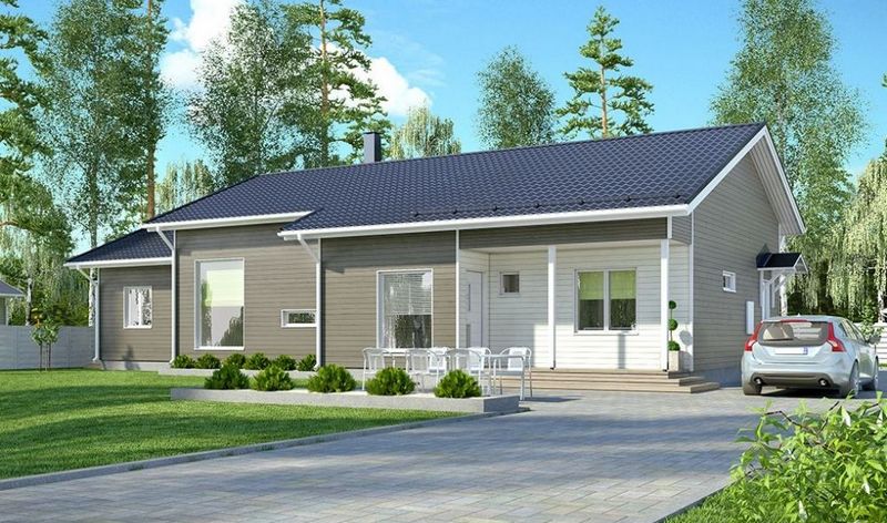 ماڈل میں درج ذیل پیرامیٹرز ہیں: کل رقبہ - 56 m2، رہنے کے کمرے - 3، کل طول و عرض - 10x5 میٹر۔ ڈیزائن میں شامل ہیں: ایک چھت، پینورامک ونڈوز۔ یہ چھوٹا سا گھر ایک معمولی مضافاتی علاقے کو ترتیب دینے کے لیے بہترین ہے، خاص طور پر اگر ارد گرد کی فطرت بڑے پیمانے پر تعمیرات کی اجازت نہیں دیتی ہے (یا یہ عام طور پر ممنوع ہے)۔ یہ منصوبہ ایک چھوٹے سے خاندان کے لیے تمام ضروری کم از کم سہولیات فراہم کرتا ہے۔ بنیادی ترتیب میں لاگت 1,800,000 روبل ہے۔