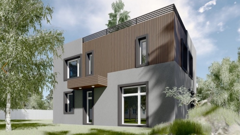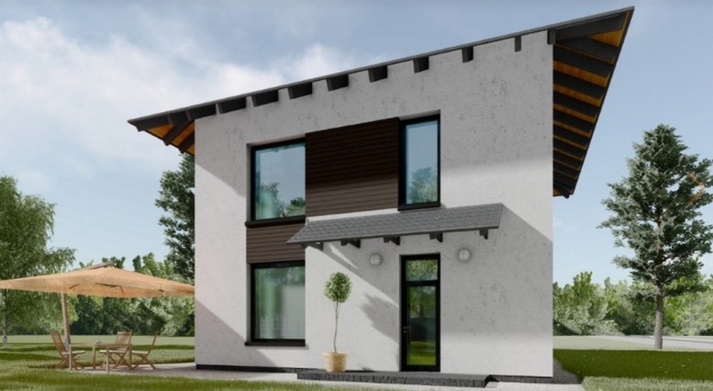 اسی طرح کا ایک منصوبہ صرف دو بار لاگو کیا گیا تھا، یہ معیاری ہاؤس کٹس سے بنایا گیا تھا اور ماسکو کے جنوب مغرب میں تکنیکی نگرانی میں ہے۔ عمارت MEGABLOK پولی اسٹیرین کنکریٹ وال پینلز پر مشتمل ہے، اس کا شہری ڈیزائن ہے، 2000 کی دہائی کے وسط میں مغربی یورپ میں مضافاتی رئیل اسٹیٹ کی طرح، اور ایک چھوٹے سے خاندان کی روزمرہ کی زندگی کے لیے ترتیب ہے۔ کمپیکٹ پلان میں وہ سب کچھ ہوتا ہے جس کی آپ کو روزمرہ کی زندگی اور آرام کے لیے ضرورت ہوتی ہے: 37 m2 کا ایک کشادہ لونگ روم جس میں ایک کچن، ایک لونگ روم (گیسٹ روم)، ایک پینٹری، گراؤنڈ فلور پر ایک باتھ روم اور تین کافی کشادہ بیڈ رومز کے ساتھ ایک باتھ روم۔ دوسری منزل پر تقریبا 9 ایم 2۔ بنیادی ترتیب ٹیرف 984,000 rubles ہے.
