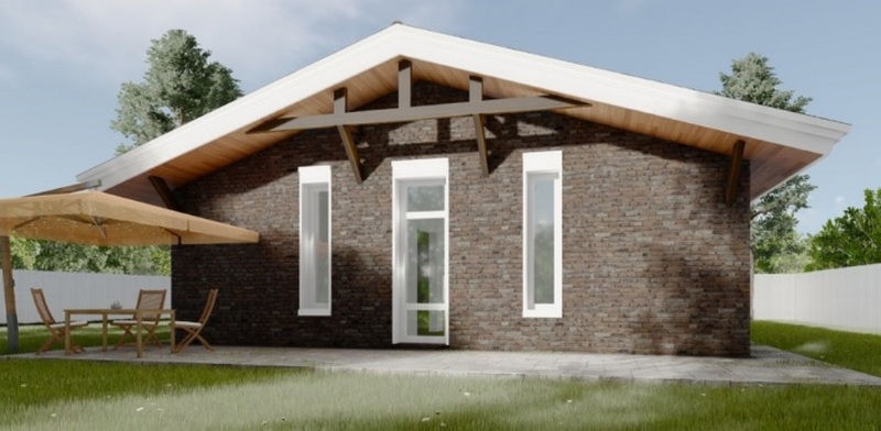 یہ اختیار ایک چھوٹے اور سستے ملک کے گھر کی خواہشات کو مدنظر رکھتا ہے۔ پراجیکٹ میں مواد کی بہترین موافقت، گرم پولی اسٹیرین کنکریٹ سلیب کے لیے ایک گیبل چھت، اعلیٰ معیار کی چھتیں، صرف چند ہفتوں میں براہ راست "پہیوں سے" اسمبلی کی اجازت دیتی ہیں۔پولی اسٹیرین کنکریٹ کی دیوار کے پینلز سے بنایا گیا کاٹیج، ایک قدامت پسند ڈیزائن اور ترتیب کا حامل ہے، جو 20ویں صدی کے مضافاتی رئیل اسٹیٹ کے لیے مخصوص ہے۔ کمپیکٹ پلان میں وہ سب کچھ ہوتا ہے جس کی آپ کو روزمرہ کی زندگی اور ویک اینڈز کے لیے ضرورت ہوتی ہے: 24.5 m2 کا ایک لونگ روم جس میں ایک کچن، 13.4 m2 کا ایک لونگ روم (گیسٹ روم)، 13.9 m2 کا ایک بیڈروم، دو باتھ روم اور سب ایک ہی منزل پر۔ بنیادی ترتیب ٹیرف - 638،000 rubles
