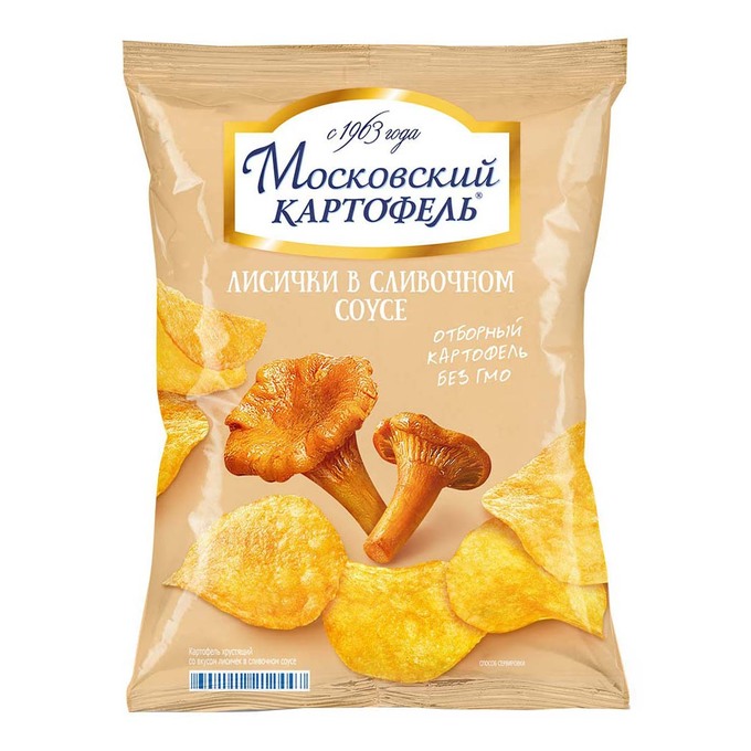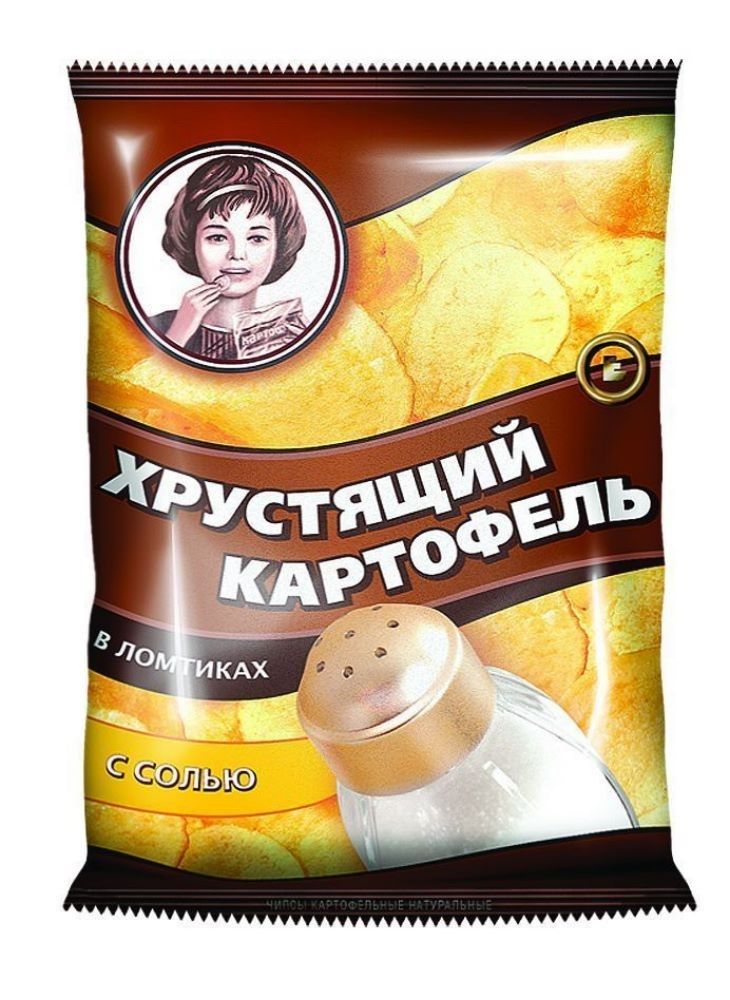 نمک کے ساتھ قدرتی مصنوعات، جدید ٹیکنالوجی کی بدولت، آلو پروسیسنگ کے دوران سنہری رنگت حاصل کرتے ہیں، لیکن کرکرا رہتے ہیں۔ کمپنی کے پاس آلو اگانے کے اپنے کھیت ہیں، جس سے تیار مصنوعات کی قیمت کم ہو جاتی ہے۔ اوسط قیمت: 107 روبل۔