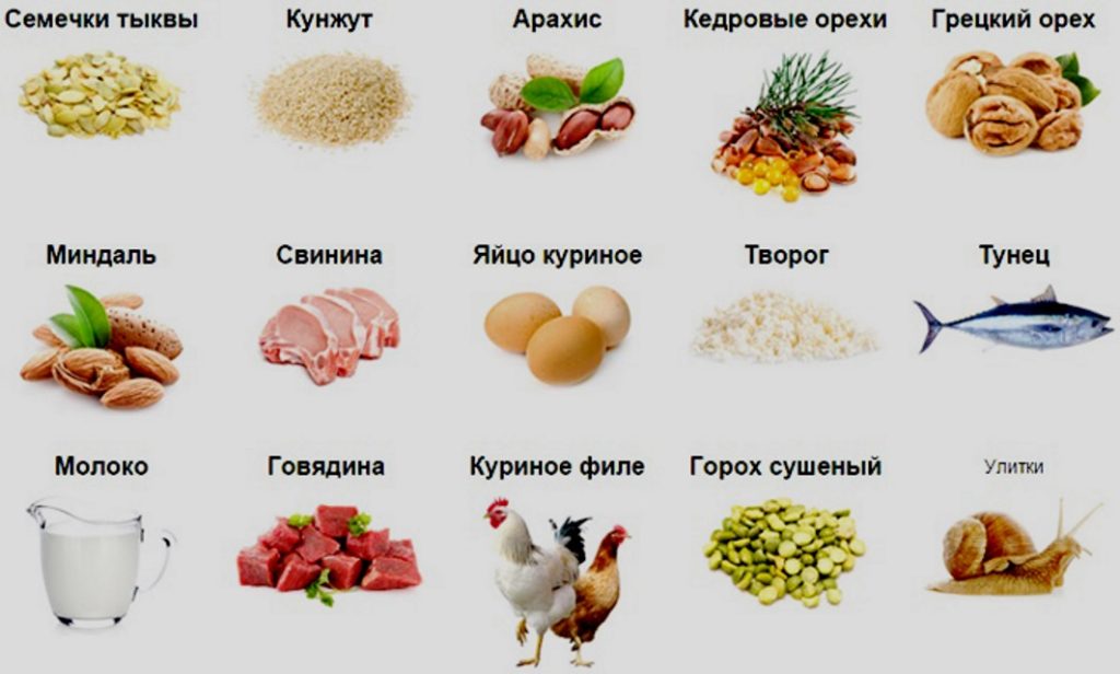 بیر سمیت بہت سی مصنوعات میں یہ مادہ ہوتا ہے۔ ان میں سے زیادہ تر گری دار میوے اور کدو کے بیجوں میں پائے جاتے ہیں۔ چکن اور سور کا گوشت، گائے کا دودھ، جگر، پنیر، بادام، گندم کا آٹا، بھورے چاول اور کیکڑوں میں بہت کچھ ہوتا ہے۔ امینو ایسڈ سے جسم کو مکمل طور پر سیر کرنا ہمیشہ ممکن نہیں ہوتا ہے۔ ایسے لوگ ہیں جو اپنی صحت کا بالکل خیال نہیں رکھتے اور مناسب غذائیت کے بارے میں نہیں سوچتے۔ جسم میں توازن بحال کرنے کے لیے، ایک شخص کو امینو ایسڈ کے اضافی ذرائع تلاش کرنے کی ضرورت ہے۔