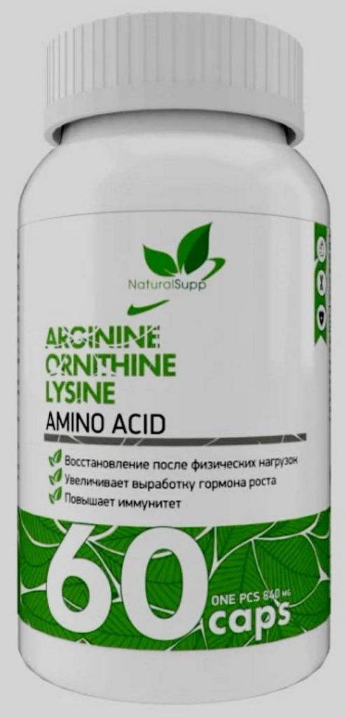 ضمیمہ میں ارجینائن، اورنیتھائن اور لائسین کے علاوہ شامل ہیں۔ یہ کیپسول اور گولیاں دونوں میں فروخت ہوتا ہے۔ مرکب ایک جار میں پیک کیا جاتا ہے. امینو ایسڈ کا تناسب بہترین ہے۔ بار بار بجلی کے بوجھ کے ساتھ، مصنوعات ترقی ہارمون کی ترقی کو فروغ دیتا ہے، جسم کی چربی کی سطح کو کم کرتا ہے. مصنوعات کی ایک مخصوص خصوصیت - مدافعتی نظام کو معمول پر لاتا ہے، تھکاوٹ کو کم کرتا ہے، مرکزی اعصابی نظام کو متحرک کرتا ہے، عضلاتی نظام میں میٹابولزم کو بہتر بناتا ہے۔ عالمگیر کے زمرے سے تعلق رکھتا ہے۔