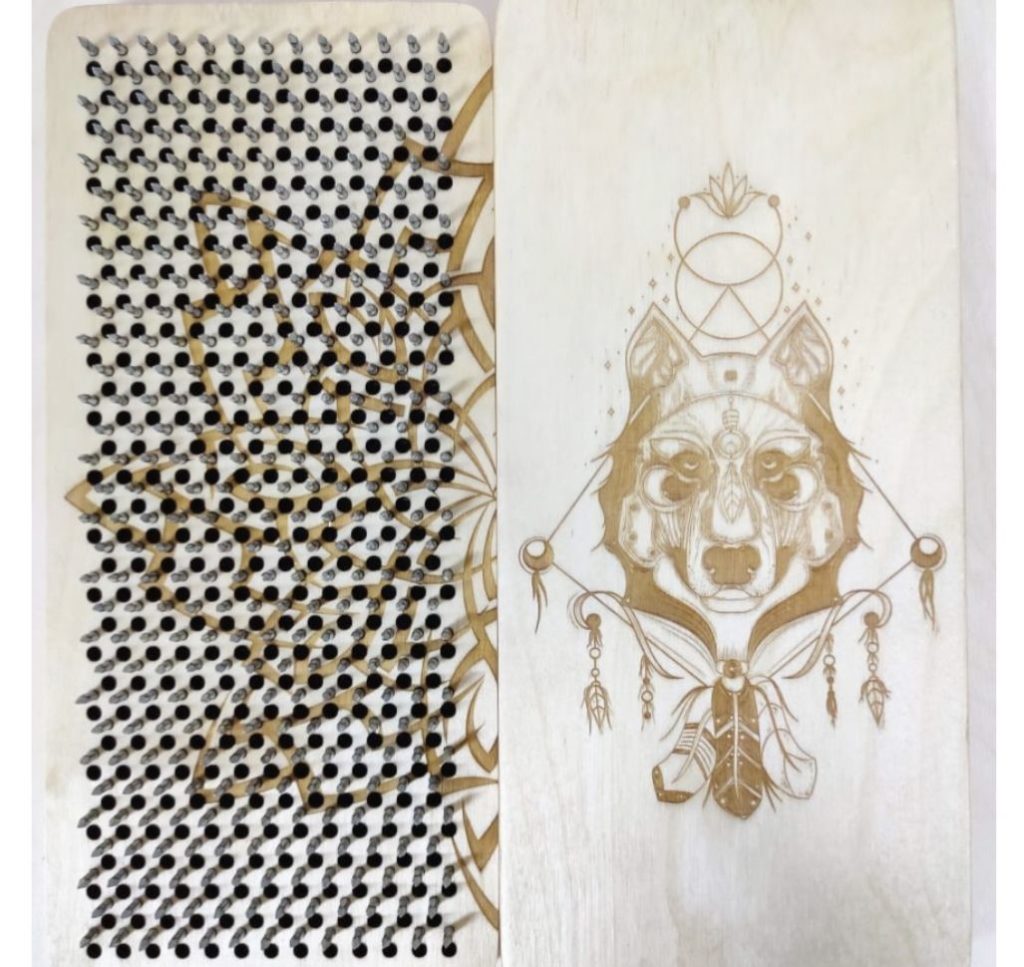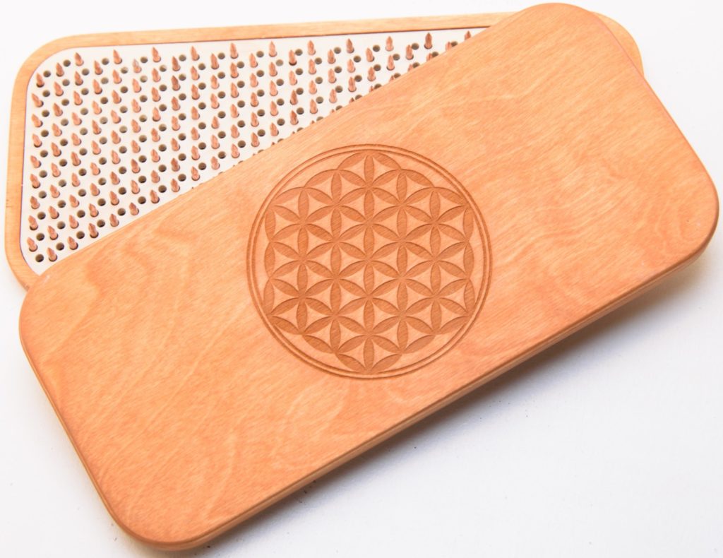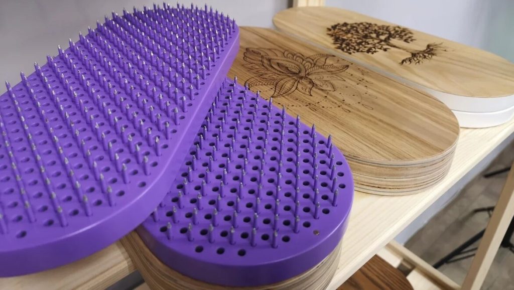 ماڈل میں ابتدائی سے لے کر پریکٹیشنرز کے گرو تک کئی قسم کی پیچیدگیاں ہیں۔ ناخن "زندگی کے پھول" کے ساتھ ایک شہد کے چھتے کی طرح ترتیب دیئے گئے ہیں۔ سطح موم اور گم تارپین سے ڈھکی ہوئی ہے۔ یہ نہ صرف نمی سے بچاتا ہے بلکہ ایک خوشگوار ہلکی خوشبو بھی دیتا ہے۔ بورڈز کو ایک دوسرے سے الگ استعمال کرنا یا چلنے کے لیے کئی سطحوں کو ملانا ممکن ہے۔ وزن: 1.2 کلو لاگت: 11400 روبل۔