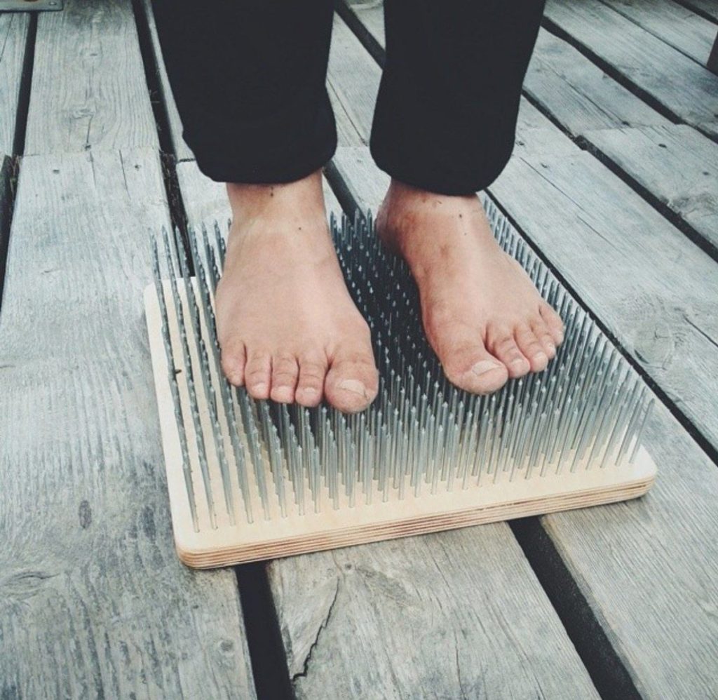 بہار سے بھرے ناخن کے ساتھ اناٹومک بورڈ۔ جب پاؤں سطح کو چھوتا ہے، تو ناخن اس کی اناٹومی کے مطابق ہو جاتے ہیں، جس سے استعمال میں زیادہ سے زیادہ سکون ملتا ہے۔یہ اشارے خاص طور پر اہم ہے اگر باقاعدہ مشقیں کی جائیں۔ سطح برچ پلائیووڈ سے بنی ہے، ہموار، چھونے میں خوشگوار ہے۔ سامنے کی طرف، لیزر کی مدد سے، ایک ڈرائنگ کندہ ہے۔ وزن: 2 کلو. طول و عرض: 34x14x6 سینٹی میٹر۔ قیمت: 7990 روبل۔