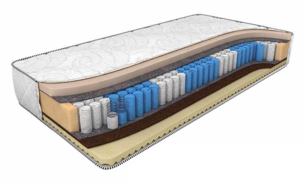 درجہ بندی میں پہلا ایک آرتھوپیڈک گدا ہے جس میں دو بستر ہیں اور ایک آزاد سپرنگ بلاک (512 ٹکڑے فی 1 مربع میٹر)۔ ایک الگ لچکدار عنصر کا ایک خاص کیس ہوتا ہے جو اسپن بونڈ غیر بنے ہوئے کپڑے سے بنا ہوتا ہے۔ بہاری حصوں کے اطراف محدب سطح کے ساتھ لیٹیکس فریم سے ڈھکے ہوئے ہیں۔ کپڑا ہوا کا ایک بہترین موصل ہے، سانس لینے کے قابل چھیدوں کی موجودگی کی وجہ سے غیر ضروری خوشبو جذب نہیں کرتا۔ مصنوعات کی مضبوطی کوکونٹ فائبر کی ایک تہہ کے ذریعے اس کی اصل شکل کو تیزی سے بحال کرنے کی صلاحیت فراہم کی گئی ہے۔