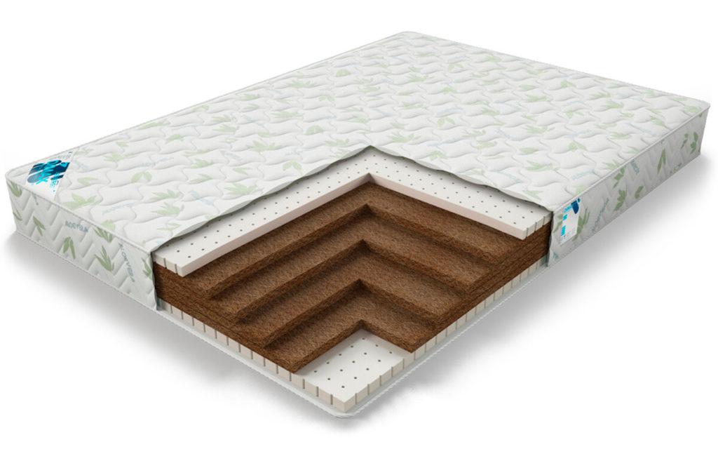یہ بغیر بہار کے ڈبل گدے چھ تہوں پر مشتمل ہے: ناریل کے کوئرز کو لیٹیکس کی تہوں سے بدل دیا جاتا ہے۔ تمام پرتیں 3 سینٹی میٹر موٹی ہیں۔ سختی کے حوالے سے، یہ ماڈل اوسط ہے، اس لیے یہ ان لوگوں کے لیے مثالی ہے جن کی ریڑھ کی ہڈی غیر صحت مند ہے۔ کارخانہ دار نے دو اختیارات تیار کیے ہیں، یعنی ایک طرف، درمیانی سختی، دوسری طرف، زیادہ۔لحاف شدہ مواد سے بنا ہوا ایک اعلی معیار کا احاطہ جو کپاس کی بنیاد پر کمپیکٹ کیا جاتا ہے - جیکورڈ۔
