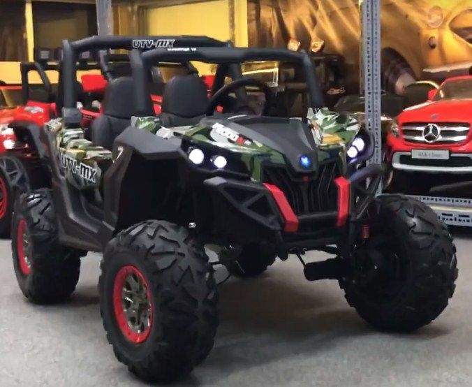 بڑے ربڑ کے پہیوں کے ساتھ بچوں کا ATV نیلے، سبز، سفید اور سرخ رنگوں میں دستیاب ہے۔ طاقتور کم پروفائل ٹائروں کے ساتھ مل کر دو طاقتور بیٹریاں فلیٹ سڑکوں پر اور مٹی، ریت اور پتھروں کو عبور کرتے وقت اچھے نتائج دکھائیں گی۔