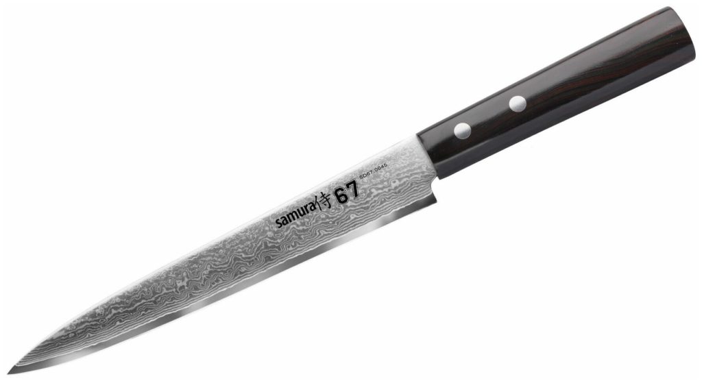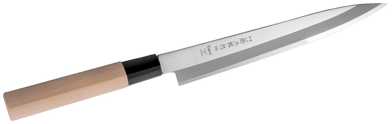 جاپان سے آنے والی اشیاء کو سب سے پہلے سٹیل کی طاقت سے پہچانا جاتا ہے۔ یہاں اس کی سختی 58 HRC ہے۔ ایک لمبا ہینڈل نمایاں کرتا ہے۔ بلیڈ کی لمبائی 19.6 سینٹی میٹر کے ساتھ، کل لمبائی 31.5 سینٹی میٹر ہے۔ گوشت کاٹنے کے لیے استعمال کیا جا سکتا ہے۔ روایتی جاپانی کھانوں کے لیے موزوں ہے۔