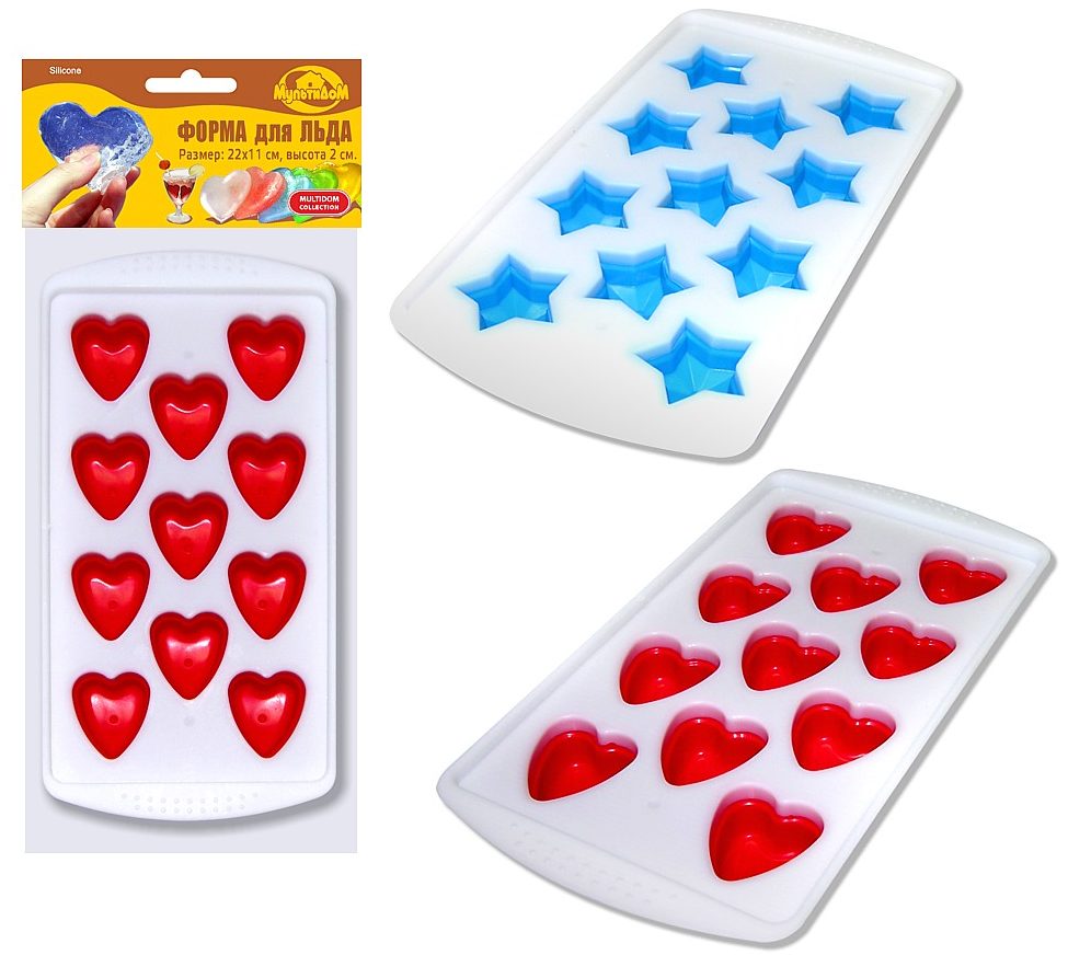 ایک روسی کمپنی کی طرف سے تیار کردہ، پائیدار اور محفوظ پلاسٹک کی تیاری میں استعمال کیا جاتا ہے. خلیے دل کی طرح نظر آتے ہیں، ان میں نہ صرف پانی بلکہ چائے، کافی اور دیگر مائعات کو بھی منجمد کرنا ممکن ہے۔ منجمد مائع آسانی سے الگ ہوجاتا ہے۔ اس کارخانہ دار کے پاس مختلف شکلوں کے ساتھ فکسچر کا ایک بڑا انتخاب ہے، لیکن یہ بھی اچھے معیار کا ہے۔