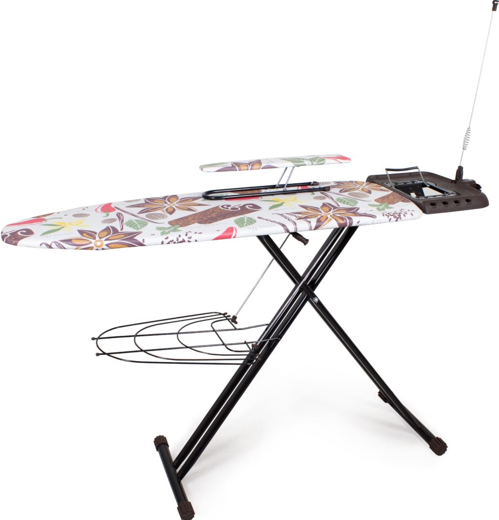 لوہے کے اسٹینڈ کے ساتھ ملٹی فنکشنل ماڈل اور نیچے لینن شیلف۔ علیحدہ طور پر، کٹ آستین کو استری کرنے کے لیے ایک پلیٹ فارم کے ساتھ آتی ہے، ایک ہٹنے والا کور۔ بورڈ کے ذریعے لوہے کو جوڑنا ممکن ہے (کیبل کے لیے ایک ہولڈر ہے)۔ بجلی کی ہڈی کی لمبائی 2 میٹر سے زیادہ ہے۔ وزن: 9.8 کلو قیمت: 2967 روبل۔