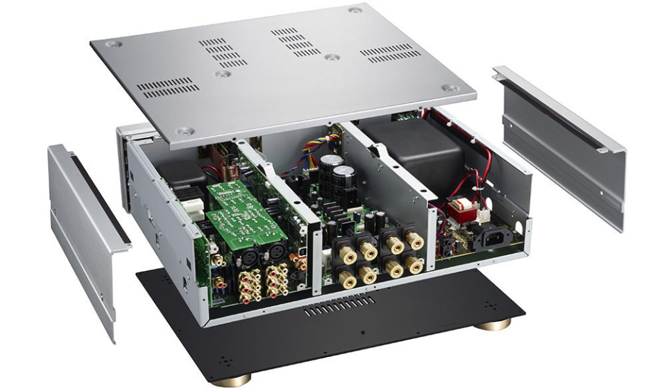 ملکیتی ایڈوانسڈ ہائی کرنٹ پش پل ایمپلیفیکیشن اور سگنل لیول ڈیویڈڈ کنسٹرکشن سگنل علیحدگی کی بدولت 70 واٹ تک فرنٹ چینلز پر آؤٹ پٹ کے ساتھ مربوط ماڈل۔ ڈیجیٹل ذرائع سماکشیی اور دو آپٹیکل ان پٹ کے ذریعے ڈیجیٹل سے اینالاگ کنورٹر سے جڑے ہوئے ہیں۔ بلٹ ان بلوٹوتھ ماڈیول بنیادی AAC اور SBC کوڈیکس کو سپورٹ کرتا ہے۔ بہترین آواز کا معیار حاصل کرنے اور مداخلت کو کم کرنے کے لیے، جب ڈیوائس کو اینالاگ موڈ میں تبدیل کیا جاتا ہے تو ڈیجیٹل سیکشن کو آف کیا جا سکتا ہے۔ ونائل ڈسکس کا اعلیٰ معیار کا پلے بیک بلٹ میں ہائی گین فونو اسٹیج کے ذریعے فراہم کیا جاتا ہے۔ خالص آواز کو یقینی بنانا اور بیرونی مداخلت کو ختم کرنا ڈیجیٹل اور آڈیو کنٹرول سرکٹس کے لیے پاور ٹرانسفارمر کے علیحدہ آؤٹ پٹس کا استعمال کرکے حاصل کیا جاتا ہے۔