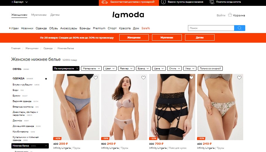 برانڈز کی نمائندگی کرتے ہوئے سستی قیمت پر غیر ملکی پروڈکشن کے فیشن ایبل انڈرویئر کے سب سے بڑے آن لائن اسٹورز میں سے ایک:
