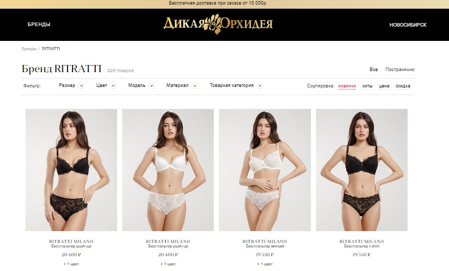 اطالوی برانڈ کا آن لائن پلیٹ فارم فرسٹ کلاس کوالٹی، جدید ڈیزائن سلوشنز، جدت اور چیزوں کی بہترین سلائی کی وجہ سے روسی خریداروں میں مقبولیت حاصل کر رہا ہے۔ نفیس خوبصورت لنجری انفرادی طور پر اور سیٹوں میں خریدی جا سکتی ہے۔ کئی سٹائل پیش کیے گئے ہیں - سمجھدار کلاسیکی سے لے کر رومانٹک لیس اور اسپورٹس جرسی تک۔