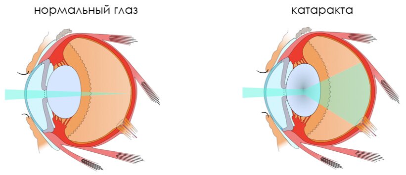 بینائی کا خراب ہونا، لینس کا بادل ہونا اینڈوکرائن سسٹم کی بیماریوں، پروٹین، لیپڈز، کاربوہائیڈریٹس، ناموافق حالات زندگی کے میٹابولک عوارض کے ساتھ ہے۔ اکثر بڑھاپے میں ظاہر ہوتا ہے، آنکھ کی چوٹوں کے بعد (چوٹ کے نشانات، زخم)۔
