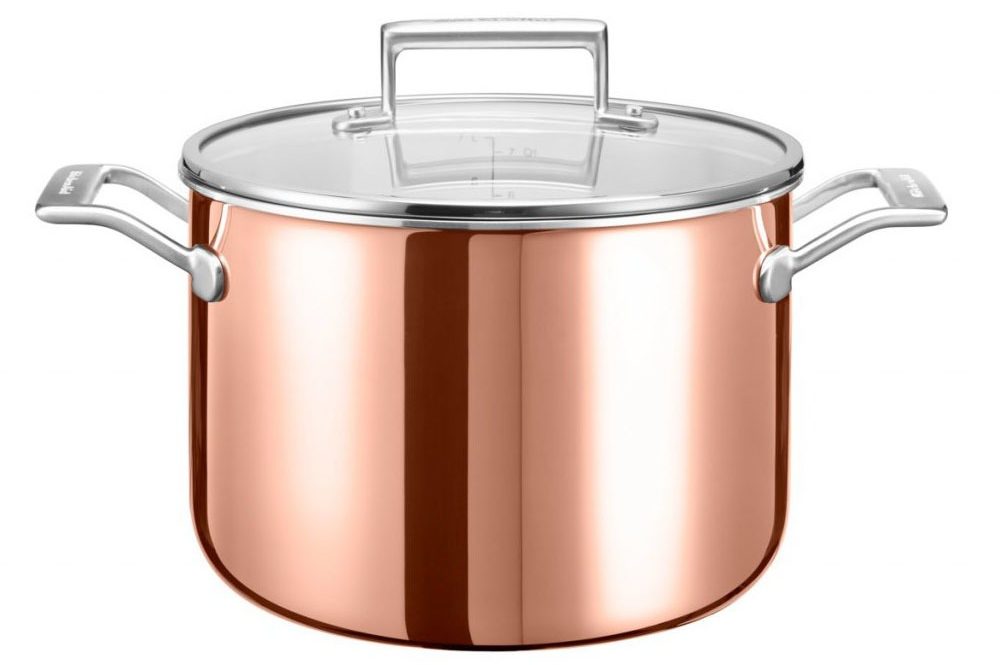 شیشے کے ڈھکن کے ساتھ ایک کلاسک سوس پین، جس میں تانبے کا رنگ عمدہ ہے۔مواد تین پرت (تانبا، ایلومینیم، سٹیل) ہے، لہذا مصنوعات کی تیز رفتار حرارتی، اچھی تھرمل چالکتا اور اعلی طاقت کی طرف سے خصوصیات ہے. ڈش جلنے یا سطح پر چپکے بغیر جلدی اور یکساں طور پر گرم ہوجاتی ہے۔ پروڈکٹ سوپ پکانے، سائڈ ڈشز پکانے، سٹو سٹو بنانے کے لیے موزوں ہے۔ KitchenAid کا ڈیزائن سب سے چھوٹی تفصیل سے سوچا جاتا ہے، شکل ایرگونومک ہے، استعمال میں آسانی فراہم کرتی ہے۔ پروڈکٹ کو گیس، الیکٹرک، انڈکشن سٹو کے ساتھ ساتھ ہوب اور اوون میں بھی استعمال کیا جا سکتا ہے۔ اوپر کا قطر 24 سینٹی میٹر ہے۔ دیوار کی موٹائی 3 ملی میٹر ہے۔ اوسط قیمت 21,490 روبل ہے۔