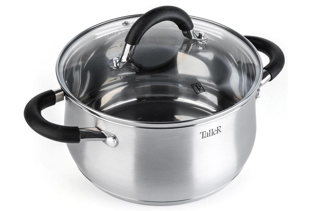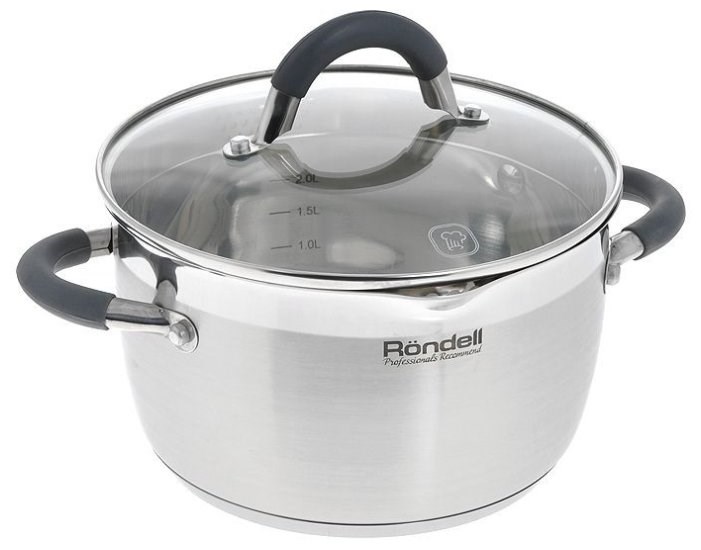 اعلی معیار کی سٹینلیس سٹیل کی مصنوعات. پرکشش ظہور اور ایک ہی وقت میں استحکام میں مختلف ہے.یہ عملی ماڈل ٹرپل باٹم ٹکنالوجی کا استعمال کرتے ہوئے بنایا گیا ہے، جس میں سٹیمپڈ اور فیوزڈ ایلومینیم ڈسک شامل ہے۔ یہ طریقہ آپ کو گرمی کو یکساں طور پر تقسیم کرنے کی اجازت دیتا ہے، اسے طویل عرصے تک برقرار رکھتا ہے. اس اثر کی وجہ سے چولہا بند ہونے کے بعد کھانا پکانے کا عمل جاری رہتا ہے۔ Rondell Flamme میں آپ تیل کے بغیر، یا اس کی کم از کم مقدار کے ساتھ پکا سکتے ہیں۔ اس کا شکریہ، مصنوعات اپنے قدرتی ذائقہ کو برقرار رکھتی ہیں. مزید برآں، پروڈکٹ پیمائش کرنے والے پیمانے سے لیس ہے، پانی نکالنے کے لیے اسپاؤٹس۔ اوپر کا قطر 20 سینٹی میٹر ہے، نیچے کا قطر 16.5 سینٹی میٹر ہے۔ موٹائی 5 ملی میٹر (نیچے) اور 0.6 ملی میٹر (دیواریں) ہے۔ نیچے ملٹی لیئرڈ، فیوزڈ ہے۔ اوسط قیمت ہے - 2،198 روبل.