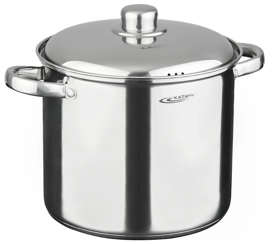 بڑے اور گنجائش والے پکوان جن میں آپ کمپوٹس، جیم، میرینیڈ پکا سکتے ہیں۔ مصنوعات کی دیکھ بھال کرنا آسان ہے، اسے خصوصی دیکھ بھال کی ضرورت نہیں ہے، یہ عملی اور پائیدار ہے۔ سٹیل کے ساتھ بات چیت کرتے وقت، مصنوعات اپنے ذائقہ کی خصوصیات کو تبدیل نہیں کرتے ہیں. مصنوعات کے نیچے موٹی ہے، ایک ایلومینیم ڈالنے پر مشتمل ہے. یہ ڈیزائن کک ویئر کے اندر گرمی کو یکساں طور پر تقسیم کرتا ہے، چولہے سے پین کو ہٹاتے وقت اسے زیادہ دیر تک رکھتا ہے۔ سٹیل کا ڈھکن بھی شامل ہے۔ ہینڈلز کو باندھنے کا طریقہ - rivets. اوپر کا قطر 28 سینٹی میٹر ہے، دیوار کی موٹائی 0.6 ملی میٹر ہے۔ مصنوعات کا وزن - 3.4 کلوگرام۔ اوسط قیمت ہے - 1،859 روبل.