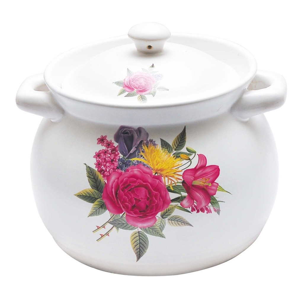 گول شکلوں کے ساتھ کلاسک انداز میں سیرامک برتن۔ گرمی کو زیادہ دیر تک اندر رکھتا ہے جس کی وجہ سے کھانا پکانے کا عمل تیز ہوتا ہے۔ ماڈل محفوظ، ماحول دوست مواد سے بنا ہے جو غیر ملکی بدبو کو قبول نہیں کرتا ہے۔ کھانا جلنے یا سطح پر چپکے بغیر یکساں طور پر گرم کیا جاتا ہے۔ سیرامک ڑککن شامل ہے۔ سائیڈ ہینڈل ایک ہی مواد سے بنائے گئے ہیں۔مصنوعات کو ڈش واشر میں دھویا جا سکتا ہے اور تندور میں بھی استعمال کیا جا سکتا ہے۔ نیچے واحد پرت ہے، 4 ملی میٹر موٹی۔ اوپر کا قطر 19 سینٹی میٹر ہے۔ اوسط قیمت 1,430 روبل ہے۔